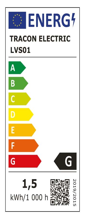 Gyártó TRACONEnergiaosztály AEnergiaosztály 2023- GGyártói cikkszám LVS01Méret 110-240 VAC, 1,5 W, 100 lm, 3500 K, IP54, EEI=AGyártó TRACONCikkszám LVS01