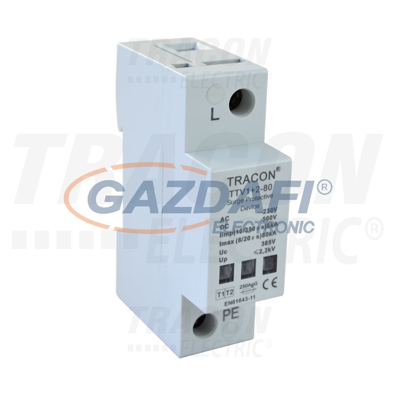 TRACON TTV1-2-80-1P AC/DC túlfeszültség levezető,1+2-es típus, egybeépített