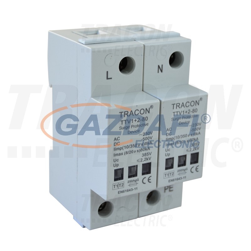 TRACON TTV1-2-80-2P AC/DC túlfeszültség levezető, 1+2-es típus, egybeépített