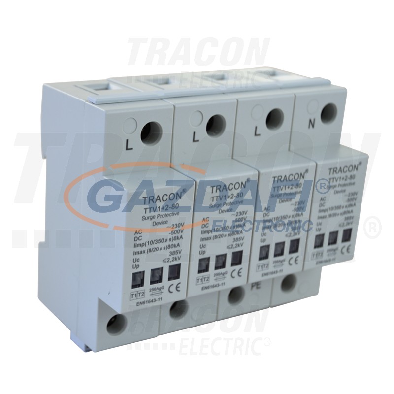TRACON TTV1+2-80-4P AC/DC túlfeszültség levezető, 1+2-es típus, egybeépített