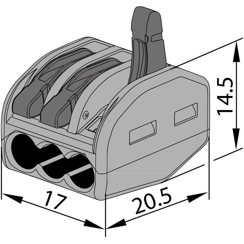TRACON OVO2,5-3 Csavar nélküli vezetékösszekötő, nyitható 0,75-4mm2, 32A, 400VAC 3P