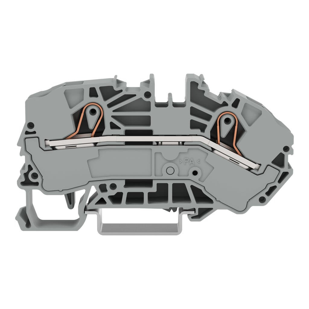Wago 2016-7601 2 vezetékes táp sorkapocs elosztó dobozokhoz; 16 mm²; oldalsó és középső jelölés; DIN 35 x 15 és DIN 35 x 7,5 sínhez; Push-in CAGE CLAMP®; 16,00 mm²; szürke