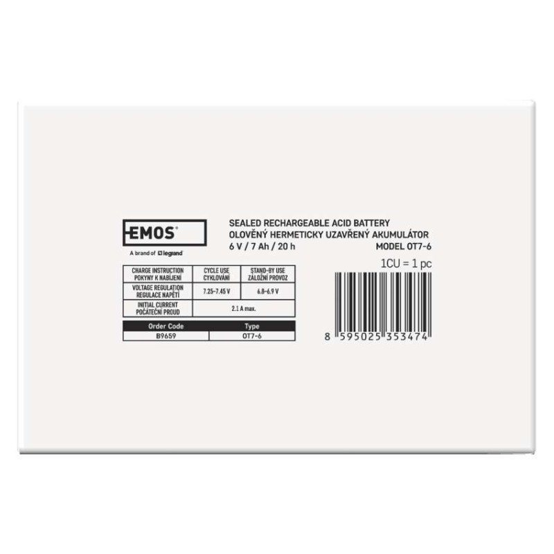EMOS B9659 AKKUMULÁTOR 6V 7AH FAST.4,7 MM