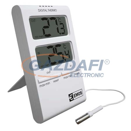 Digitális hőmérő vezetékes érzékelővel (3 m) . A hőmérő menti a beltéri és kültéri hőmérsékletet, valamint a legalacsonyabb és legmagasabb mért hőmérsékleti értéket.
