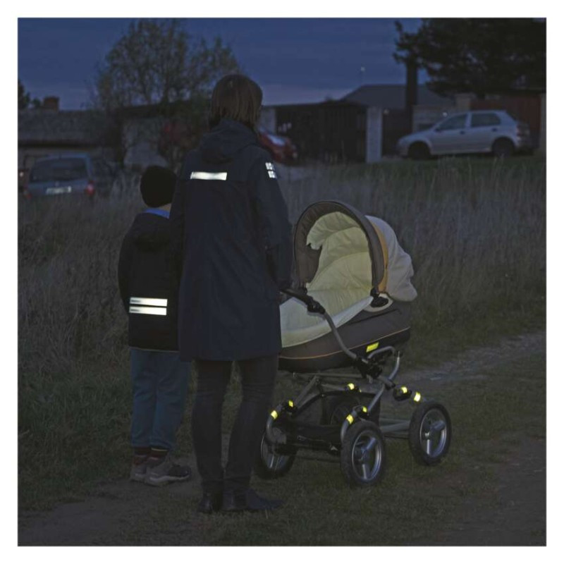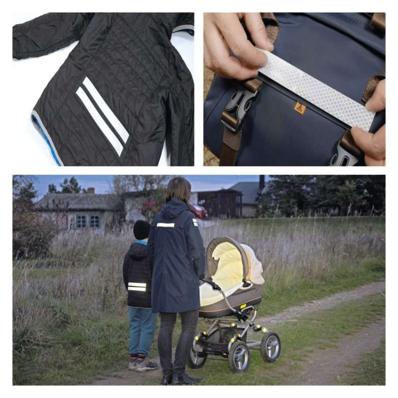 További biztosításra használható, ahol szükséges. A fényvisszaverő szalag visszaveri a fényt a forrásba gyenge látási viszonyok között.