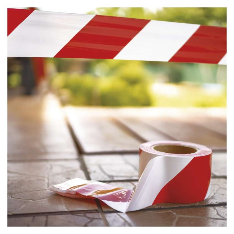 Piros-fehér nem ragadó jelölőszalag alacsony sűrűségű polietilénből, teljes szélességében csíkozott. Árkok, építési területek, sportpályák, különböző veszélyes helyek és más területek körülkerítésére használható. A szalag kartonpapír #dobban# kapható egy dobozban, amelyről közvetlenül lecsévélhető. A szalag lecsévélése és kezelése így egyszerűbb, a szalag nem gurulhat el, és nem csévélődhet le véletlenül.