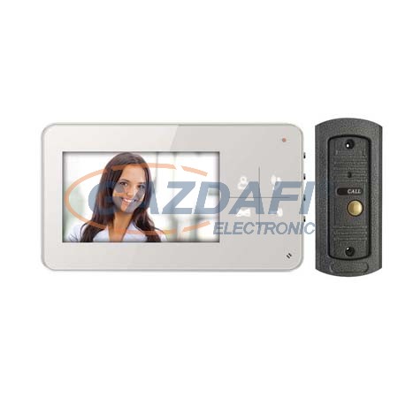Egyszerű videótelefon-rendszer ajtóhoz. A kép 4.3" LCD monitoron jelenik meg. Az eszköz áramellátása közvetlenül 230 V-os feszültségről, dugós kábellel biztosítható. Az eszköz lehetővé teszi az ajtózár vezérlését. A kamera megvilágítása max. 150 cm.