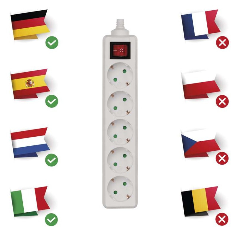 Kiváló minőségű, különálló SCHUKO aljzat, többcsatlakozós, tehát egyszerre több készüléket ellátó hosszabbító kábelhez.