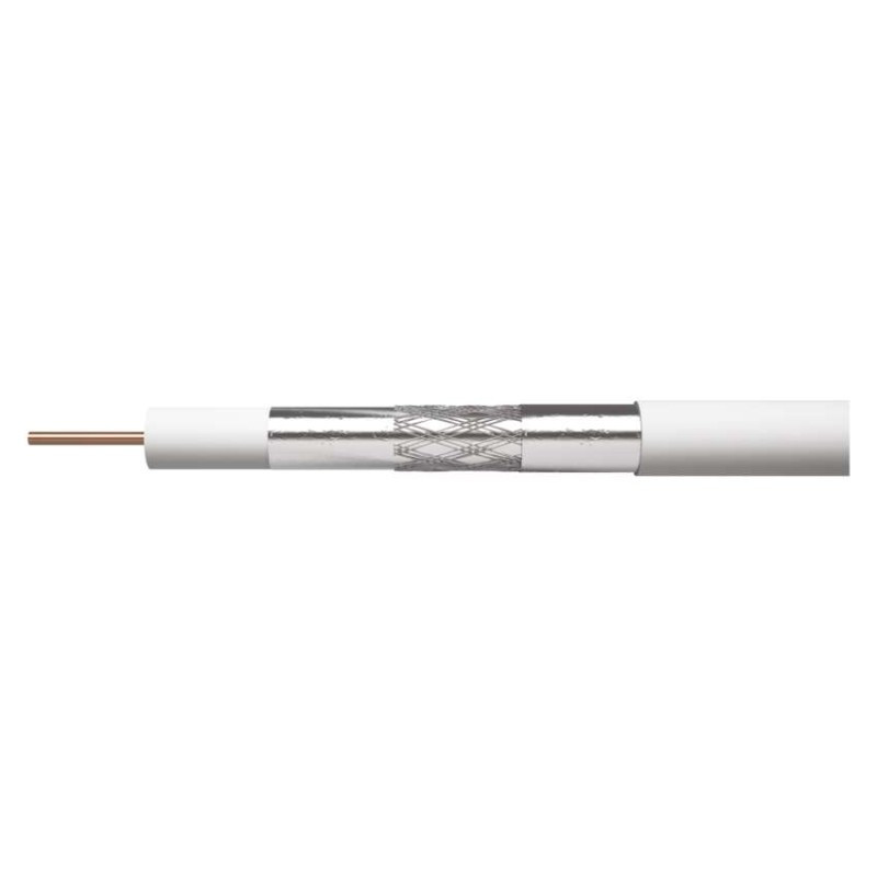A legjobb minőségű koaxiális kábel tiszta réz központi vezetővel, ónozott CuSn rézből készült tripla árnyékolással, fehér színű. A televíziós jelátvitellel kapcsolatos összes nagy teljesítményű alkalmazáshoz tervezve. A központi vezetőhöz és a fonathoz használt anyagnak köszönhetően a kábel extrém módon ellenáll az időjárási körülményeknek, a páratartalomnak és a korróziónak. Ideális a ház vagy a lakás vezetékezésére.