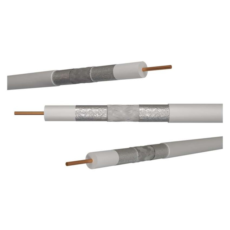 RG6 típusú, kiváló minőségű, tiszta réz központi vezetővel és TRISHIELD tripla árnyékolással rendelkező koaxiális kábel, fehér színben, A osztályú. A kábelt úgy tervezték, hogy megfeleljen a CCTV-, TV- és SAT-jelek nagy igénybevételt jelentő átvitelének. Mivel a kábel árnyékolása kiváló hatékonyságú (nagyon alacsony sugárzású), a kábel segítségével nagyon nagy teljesítményű jel adható, így hatékonyan növelhető a jeladási távolság. A kiváló minőségű árnyékolás kiküszöböli több kábel konvergenciáját nagy távolságban.