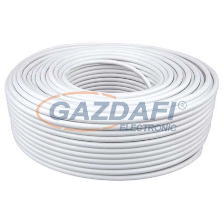RG6 típusú univerzális koaxiális kábel tiszta réz központi vezetővel, alumíniumvezetékből készült dupla árnyékolással, fehér színű. Ezt a kábelt TV- és SAT-jelek nem nagy igénybevételt jelentő átviteléhez történő alkalmazásra tervezték. A központi vezetőhöz és a fonathoz használt anyagnak köszönhetően a kábel extrém módon ellenáll az időjárási körülményeknek, a páratartalomnak és a korróziónak. - Kifutó termék.
