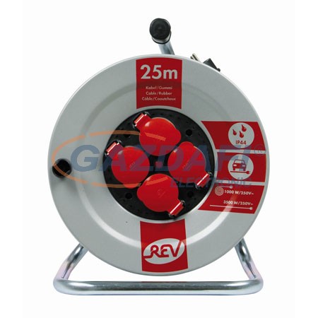 GAO 0088622 Kábeldob, kültéri, fém, 25m, 4 dugalj, 3x1,5 H07RN-F