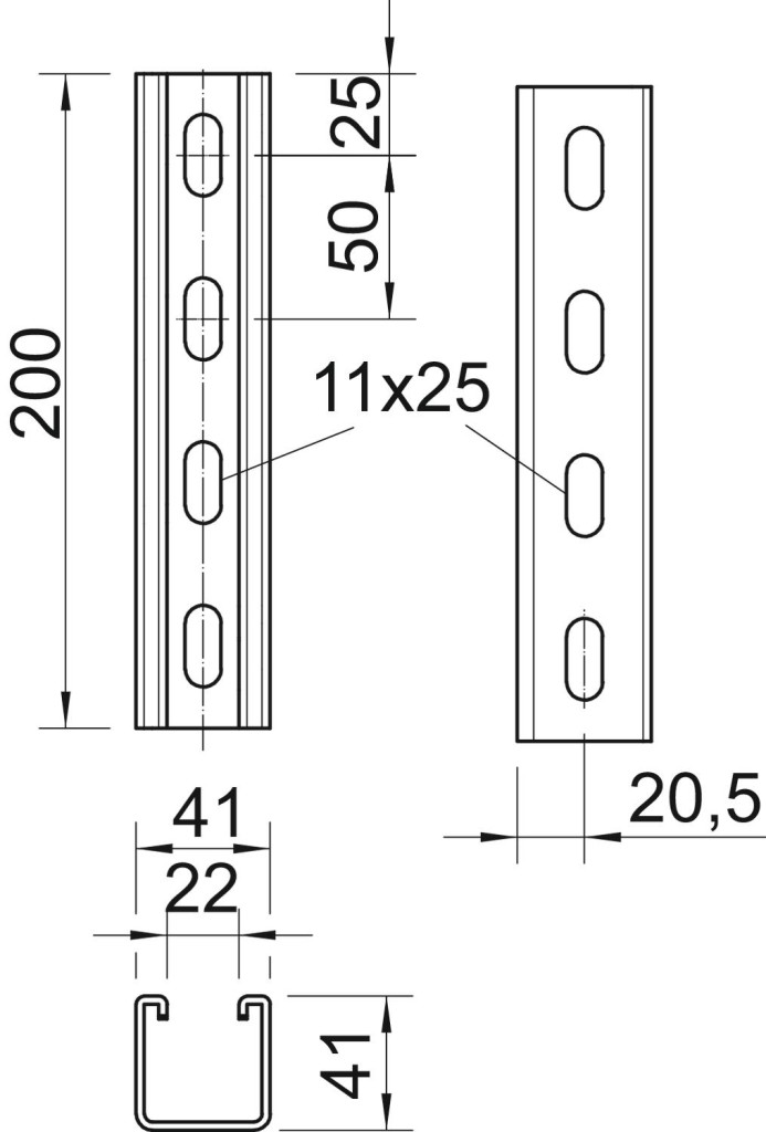 Szerelősín MS4141, perforált, résszélesség 22mm, 700mm szalaghorganyzott acél [FAD] OBO 1123272 MSL4141P0700FS