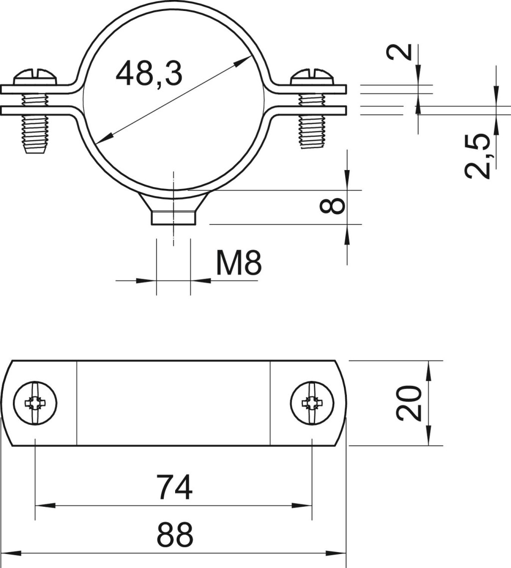 OBO 1387111 2900WM8 48.5 FT Távtartó Kengyel M8 menetes csatlakozóval, nehéz kivitel 1 1/2 merítetten tűzihorganyzott acél