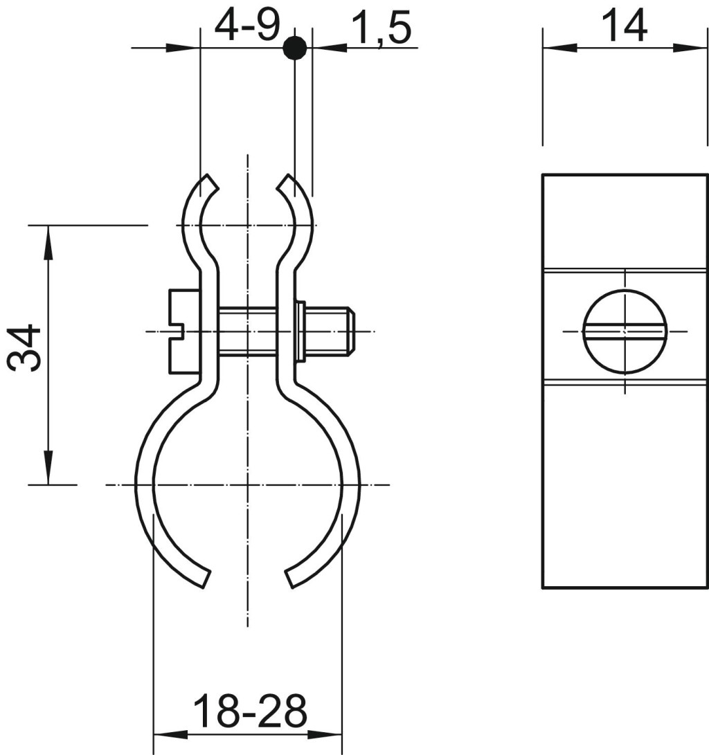 Vezetékek feszítősodronyokra történő rögzítéséhez. M4 x 13 csavarral