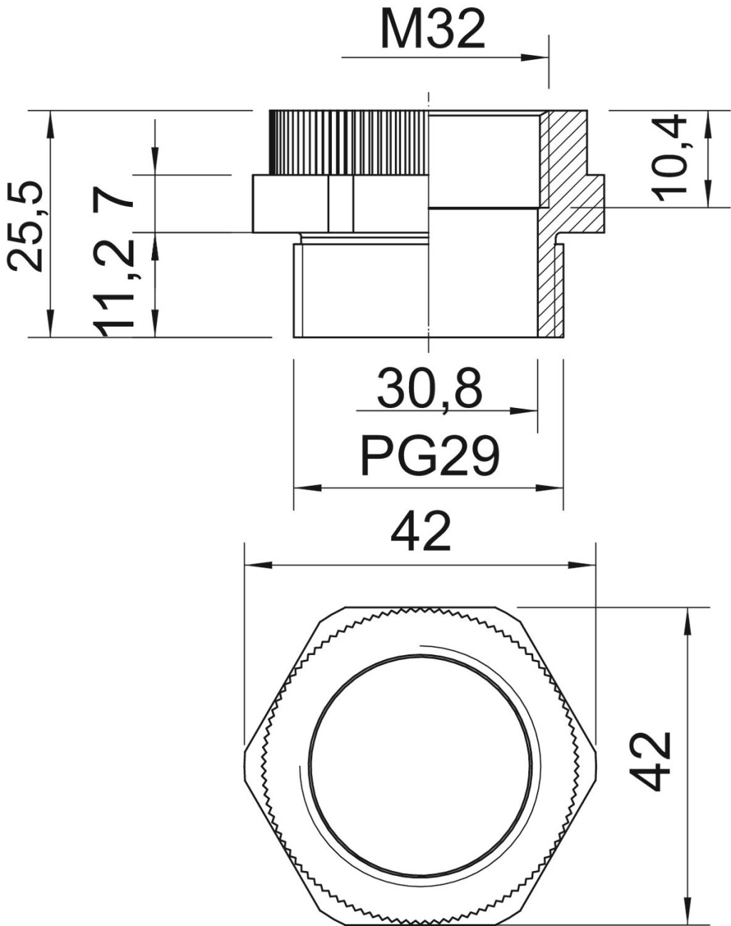 Átalakító PG furatról metrikus menetes furatra való áttéréshez.