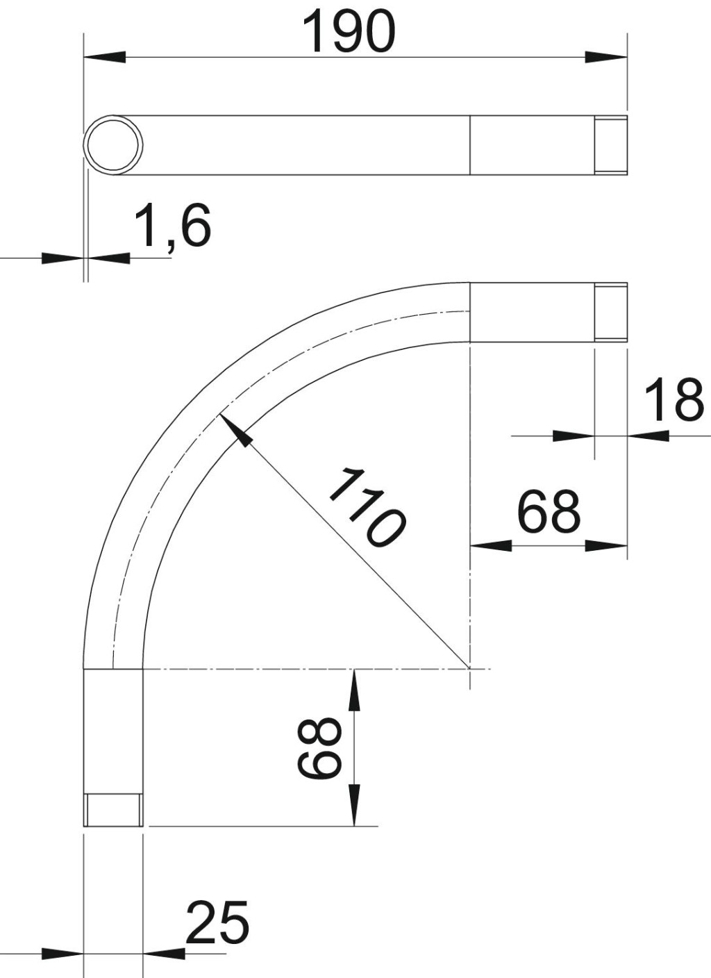 90°-os csőív elektromos védőcsövekhez az MSZ EN 61386-1 szerint, menetes végekkel az MSZ EN 60423 szerint. Sorjamentes belső fallal. Csőívenként egy darab összekötő karmantyú rá van csavarva.