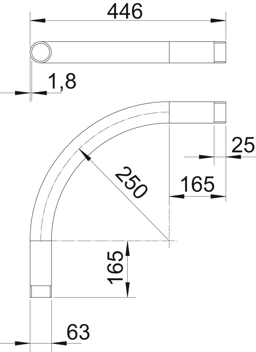 90°-os csőív elektromos védőcsövekhez az MSZ EN 61386-1 szerint, menetes végekkel az MSZ EN 60423 szerint. Sorjamentes belső fallal. Csőívenként egy darab összekötő karmantyú rá van csavarva.
