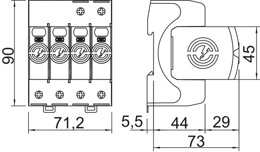• pólusonkénti levezetőképesség maximum 40 kA (8/20) a nagyteljesítményű varisztoroknak köszönhetően