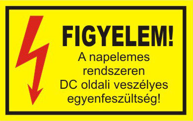 "Figyelem! A napelemes rendszeren DC oldali veszélyes egyenfeszültség" öntapadó felirat, sárga, 150x100mm általános leírása: