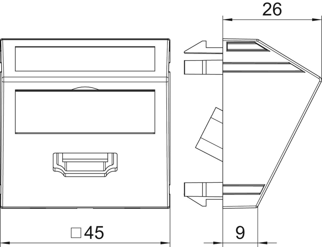 Multimédia tartó HDMI csatlakozóhüvellyel, egyenes kivitel, felirati mezővel, HDMI csatlakozóhüvely csavaros rögzítéssel. A bepattinható rögzítés normál és 90 fokkal elforgatott beépítést is lehetővé tesz.