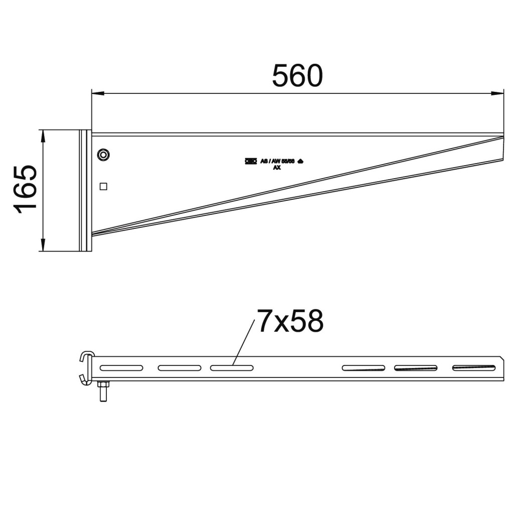 OBO 6419310 AS 55 56 FT Oszlopra Szerelhető Konzol IS8-oszlophoz B=560mm merítetten tűzihorganyzott acél