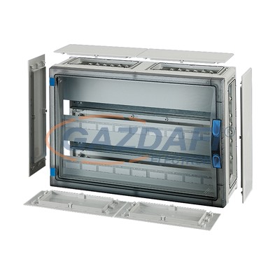 - 54 osztásegységig, zárólap készlettel, Fixconnect kapocstechnika PE és N kapcsokhoz, 6 db szekrényösszekötővel