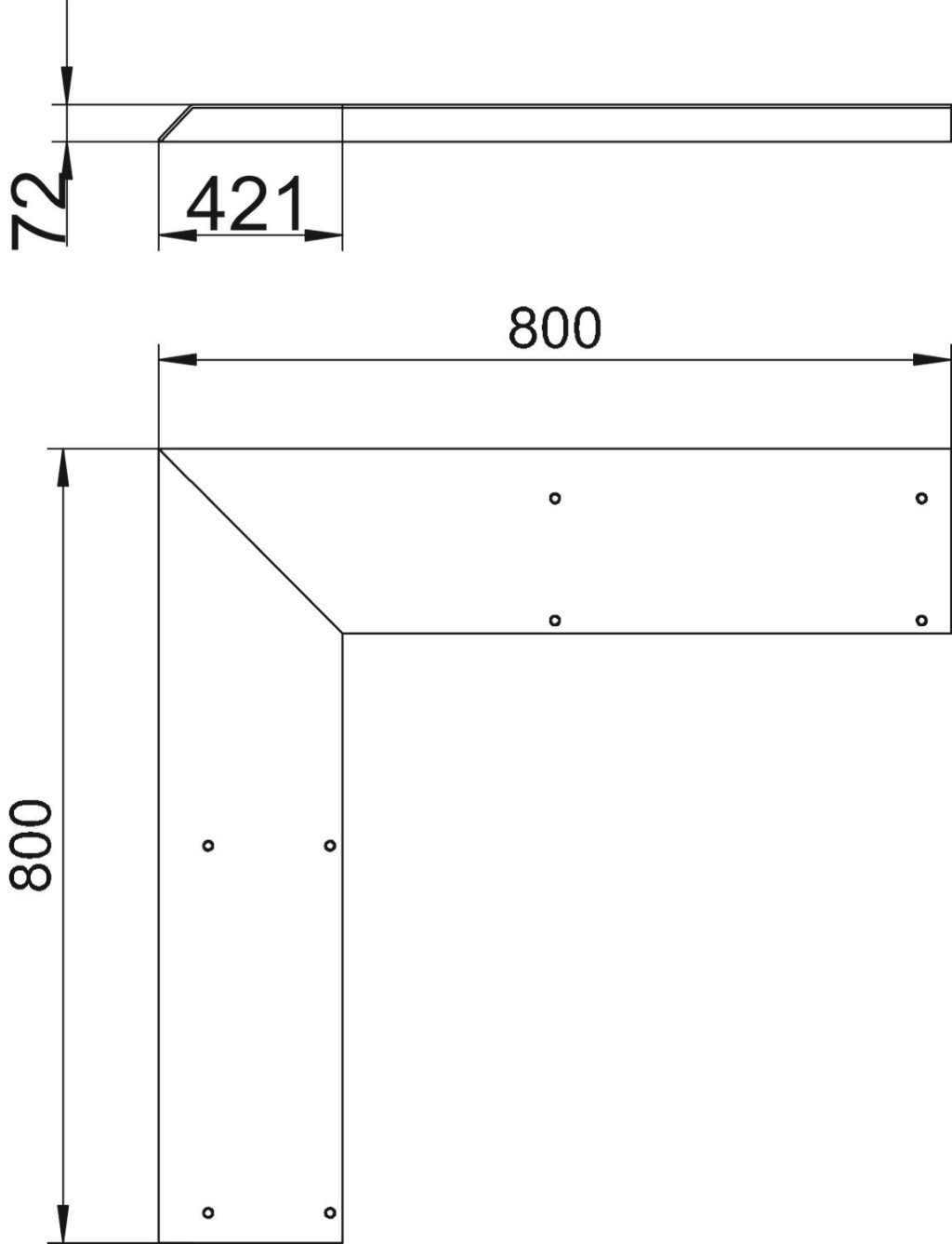 2 részes vakfedél, padlóra szerelhető csatorna külső sarkának a lefedéséhez, illeszkedik az AIK/U csatorna-alsórészekhez, 10 rögzítőcsavarral együtt. A csatornafedelet a csatorna-alsórész alumínium oldalprofiljába kell erőteljesen becsavarozni. A fedél ferde része 45°-os szögben túlnyúlik a csatorna-alsórészen.