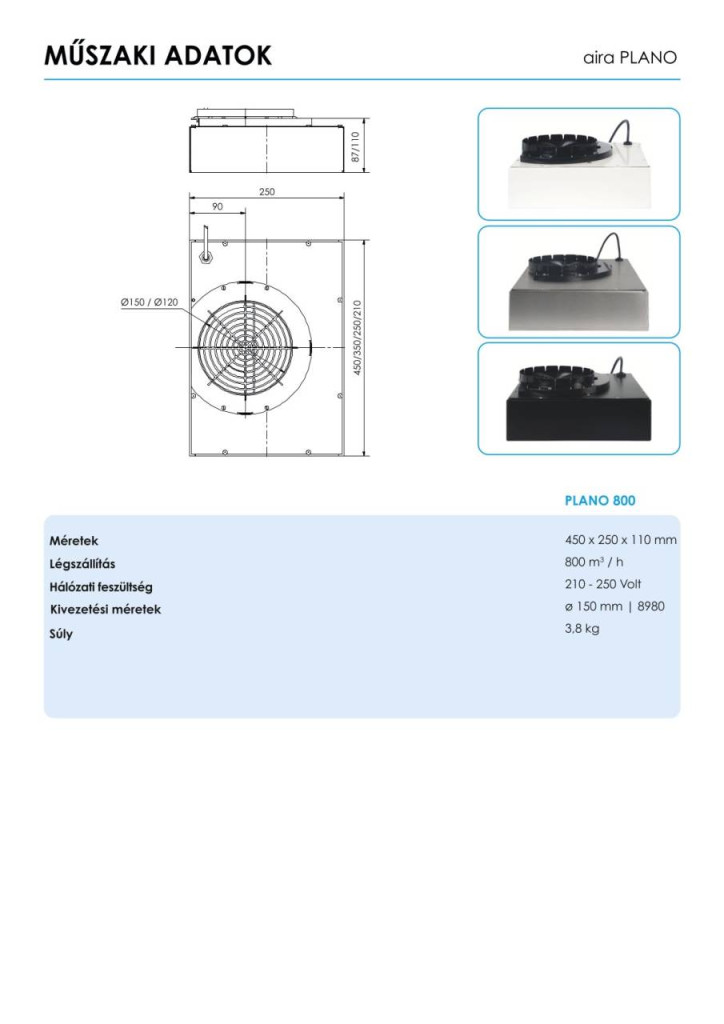 Az AIRA PLANO plazma szűrő alkalmas sziget, döntött üveges és beépített elszívókhoz is. A többi plazmaszűrőhöz hasonlóan a PLANO könnyen és gyorsan, akár utólag is felszerelhető a már meglévő páraelszívókhoz. A PLANO plazma szűrőt az elszívó kivezető csonkjára kell szerelni. Amint bekapcsolja az elszívót, a beépített elektronikus érzékelő automatikusan bekapcsolja a plazma szűrőt (1 m/sec sebességgel) és azonnal megkezdi a levegő szűrését. Amint kikapcsolja az elszívót, a plazma szűrő is lekapcsol. (0,5W fogyasztás készenléti üzemmódban).