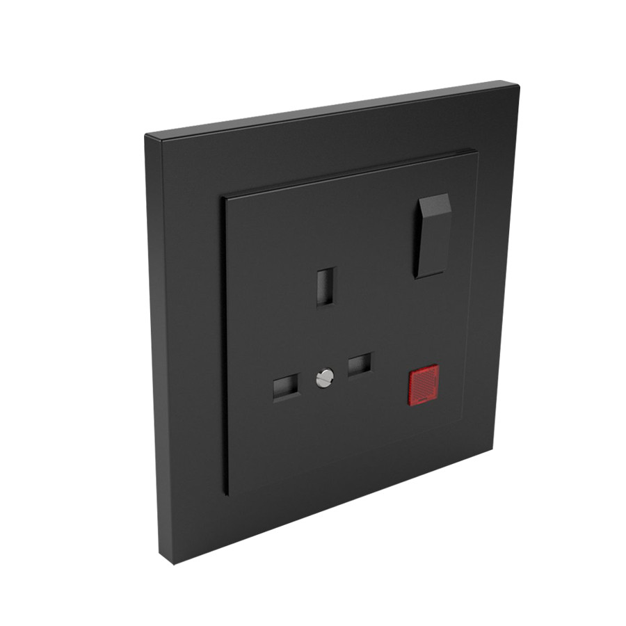Komplett brit típusú földelt csatlakozó aljzat irányfénnyel, 13A-250V, szürke színű
