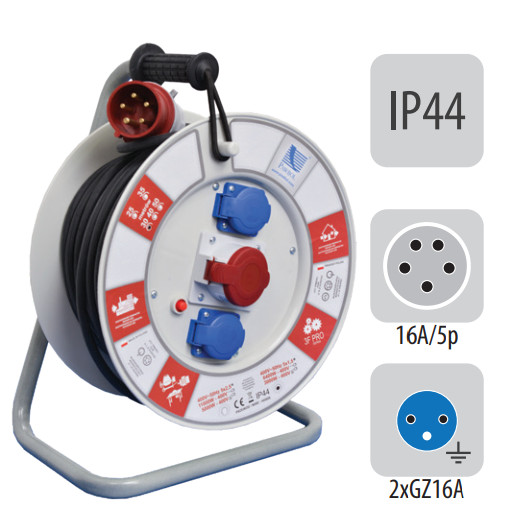 PAWBOL B.1110-35S Kábeldobos hosszabbító, H05RR-F 5x2,5mm2, 35m, 2xGZ16A, 1x16A/5p (400V)