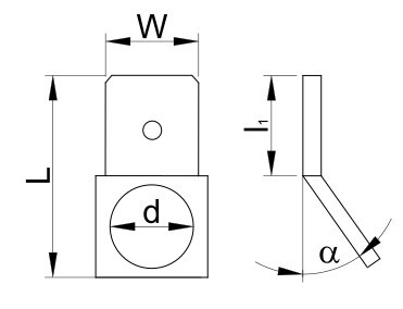 TRACON CSA-45-5 Csavaros rögzítésű szigeteletlen csatlakozó csap, sárgaréz 6,3x0,8mm 45°, M5