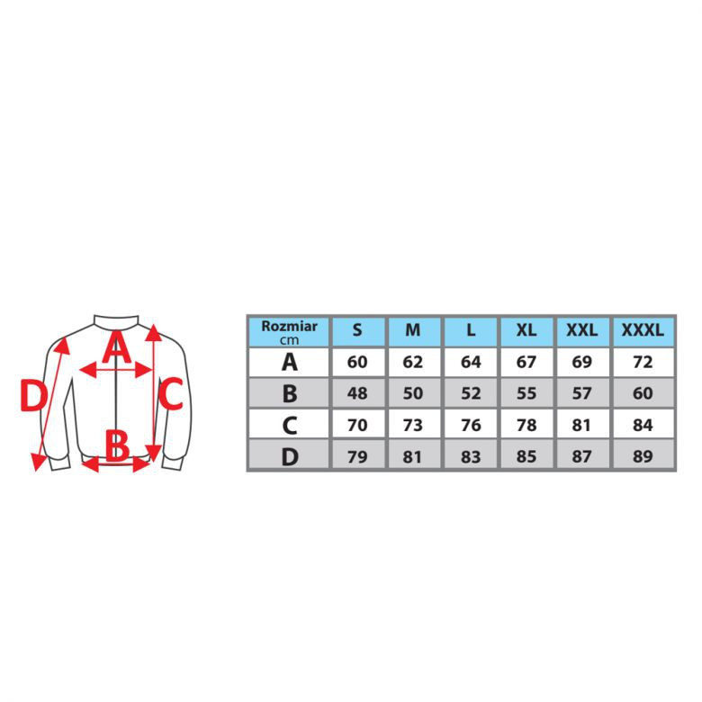 Anyag: külső - 100% poliészter 190T, 220g/m², PVC bevonattal, belső - 100% poliészter pamut, 160g/m²; vízállóság 2000mm; 6 zseb, ebből 3 tépőzárral; fényvisszaverő elemek.