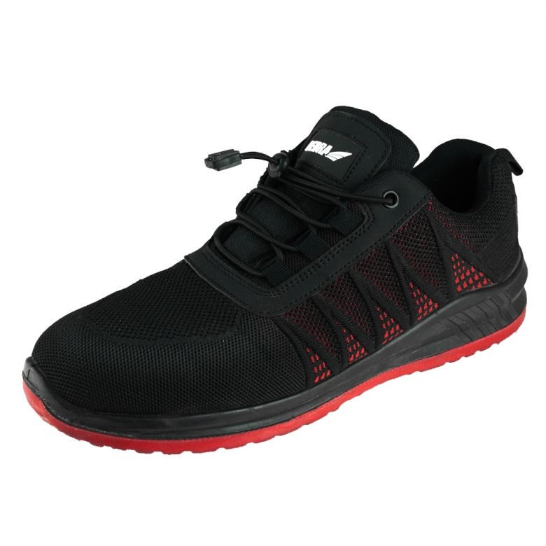 Anyaga: hálós szövet; CE tanúsítvány; EN ISO 20345:2012 szabvány; kompozit lábfej; kettős sűrűségű PU/PU talp; csúszásmentes, párnázott sarok; kényelmes, formázott talpbetét; antiektrosztatikus talp.