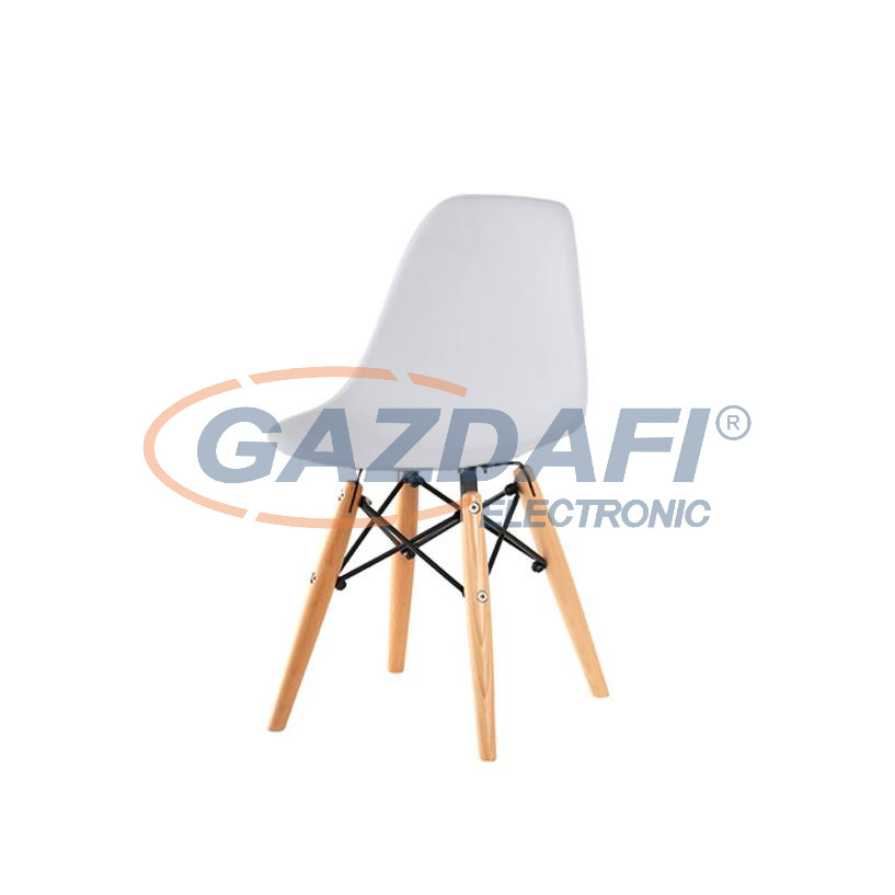 Modern étkezőszék öntött ABS műanyagból, tömörfa és festett acél lábakkal.