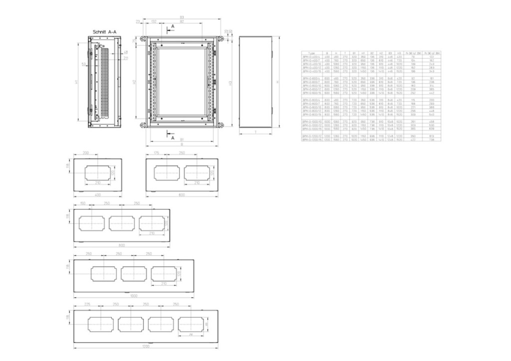 EATON 193232 Szekrény ajtó nélkül, (IP55), szürke, vakolatra, Szé/Ma/Mé=1200x1560x270