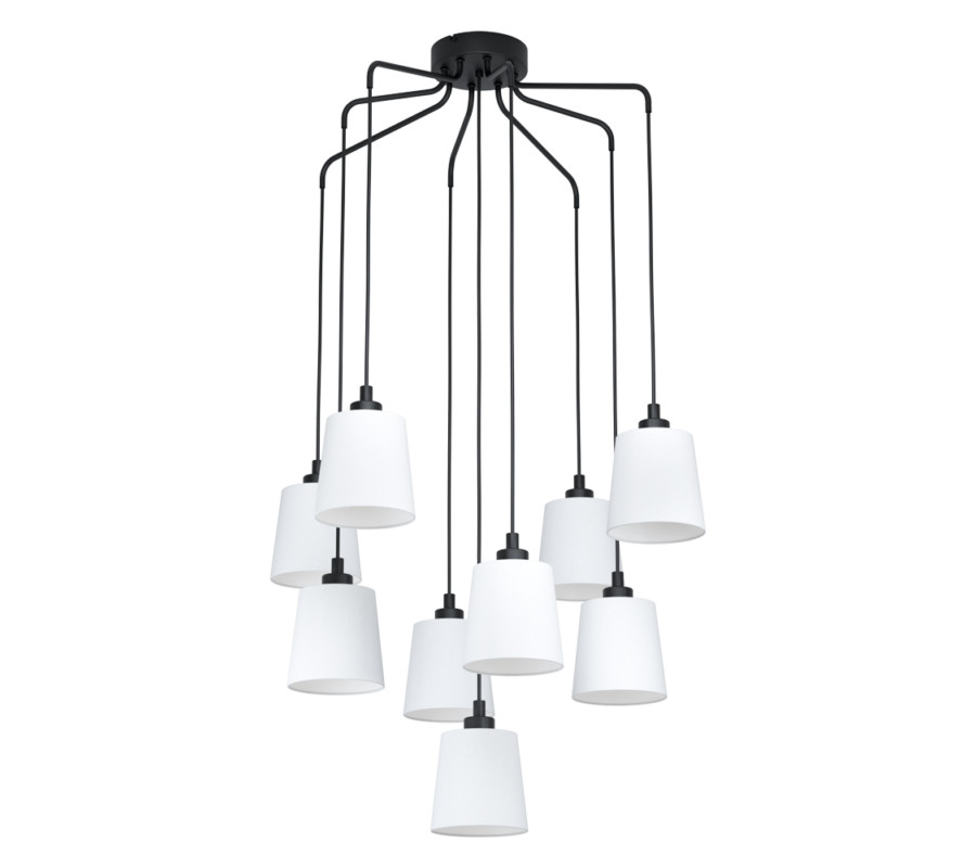 Manufacturer EGLOMaterial acél,textilDiameter 780mmEnergy class NAEnergiaosztály 2023- -Socket E27Gyártói cikkszám 39738IP protection IP 20Height 1500mmColor fekete,fehérWattage 9X40WType függesztékGyártó EGLOItem number EGLO39738