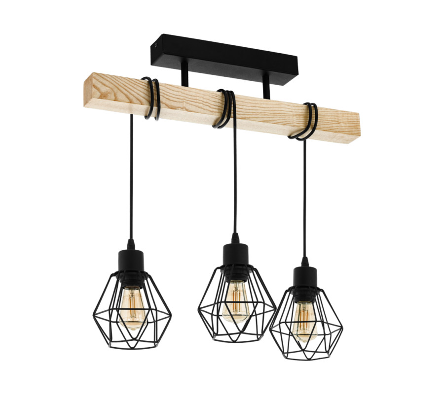 EGLO 43131 Mennyezeti lámpa E27 3x60W fekete/tölgy Townshend5