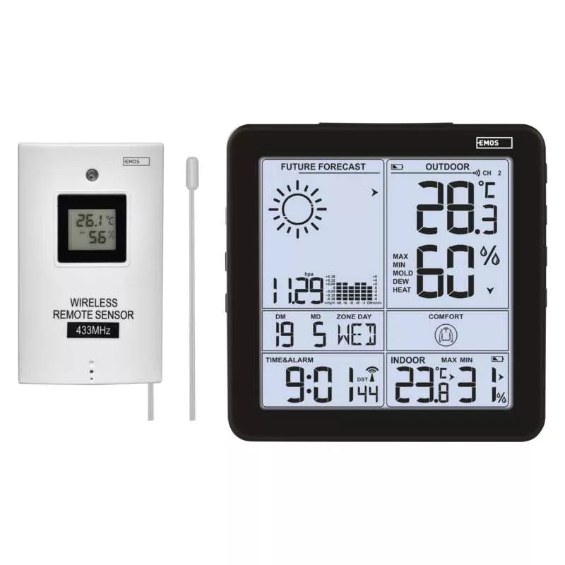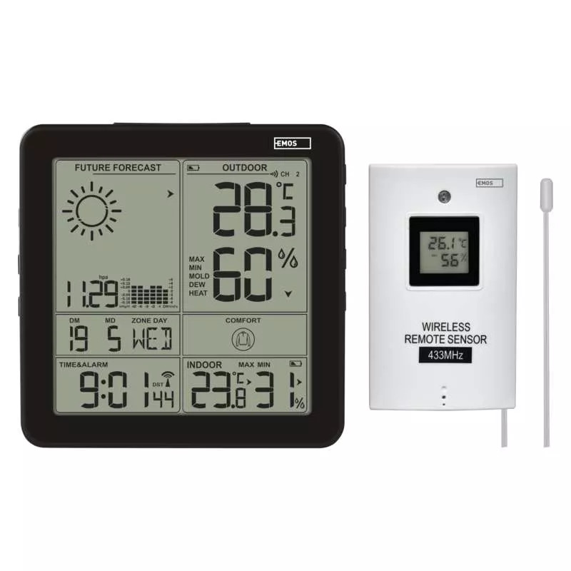 Az ablak mellett lógó kis fali hőmérők már a múlté! A modern időjárás-állomások nem csak az aktuális hőmérsékletet jelzik, hanem ennél sokkal többet is tudnak. Az E5080 Home Wireless Weather Station készüléknek köszönhetően nem kell reggel, munkába indulás előtt megnéznie az égboltot, és próbálnia kitalálni, milyen lesz az időjárás a nap folyamán. Csak egy pillantás a kijelzőre, és máris tudni fogja! Az összes alapváltozó mérése (hőmérséklet, páratartalom, nyomás). Az időjárás-állomás -40 °C és +70 °C közötti külső hőmérsékletet és -10 °C és +50 °C közötti belső hőmérsékletet mér, mindkettő 0,1 °C felbontással. Jöjjön el és nézze meg, mit tud még az otthoni vezeték nélküli állomás.