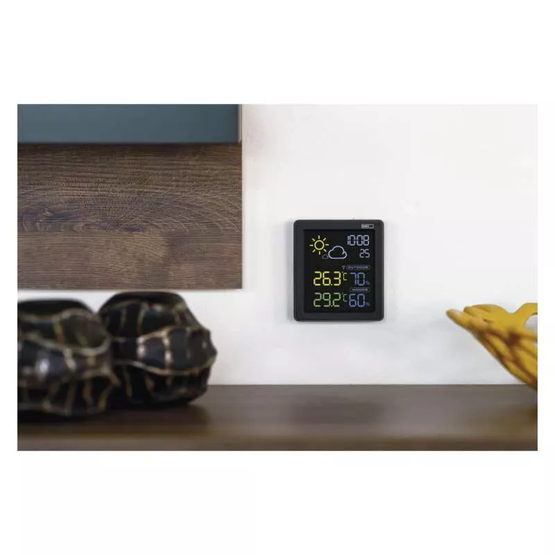 Hány fok van jelenleg odabent vagy odakint? Néhány óra múlva is sütni fog a nap, vagy esőt jósolnak? Az E8647 időjárásmérő állomás választ ad mindezekre a kérdésekre, és nem fogja többé hagyni, hogy az időjárás megzavarja Önt. A háttérvilágítású kijelzőnek köszönhetően láthatja, hogy mi az aktuális hőmérséklet vagy páratartalom. Az időjárás-állomás számos praktikus kiegészítő funkcióval is megörvendezteti Önt, beleértve az órát vagy ébresztőórát.
