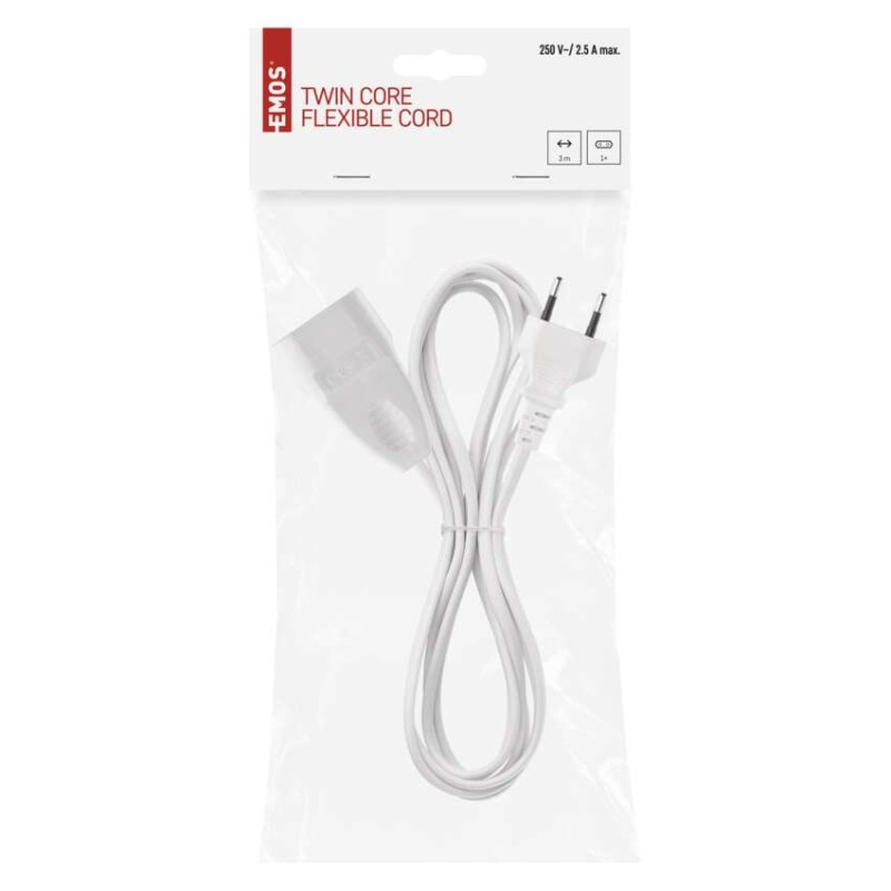 EMOS P01303 Hosszabbító 3 m / 1 aljzat / fehér / PVC / 0,75 mm2