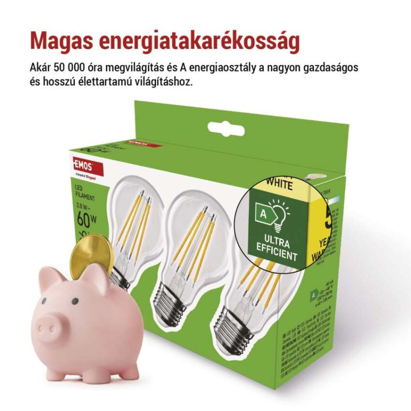 Emos ZF5147.3 LED izzó Filament A60 A CLASS/ E27 / 3,8 W (60 W) / 806 lm / meleg fehér