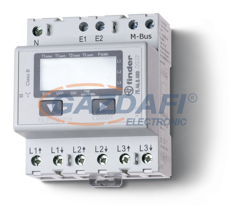 FINDER 7E.46.8.400.0032 Fogy.mérő, 3F,4KE,65A, LCD, M-BUSZ, Hit.
