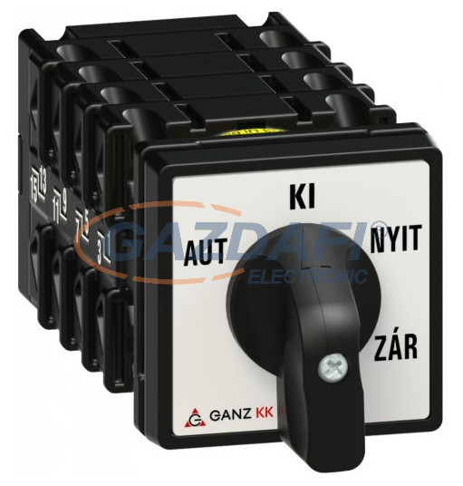 GANZ KK0-20-6598 Átkapcsoló, AUT – KI – NYIT – ZÁR felirattal, 4P, 20A, IP44