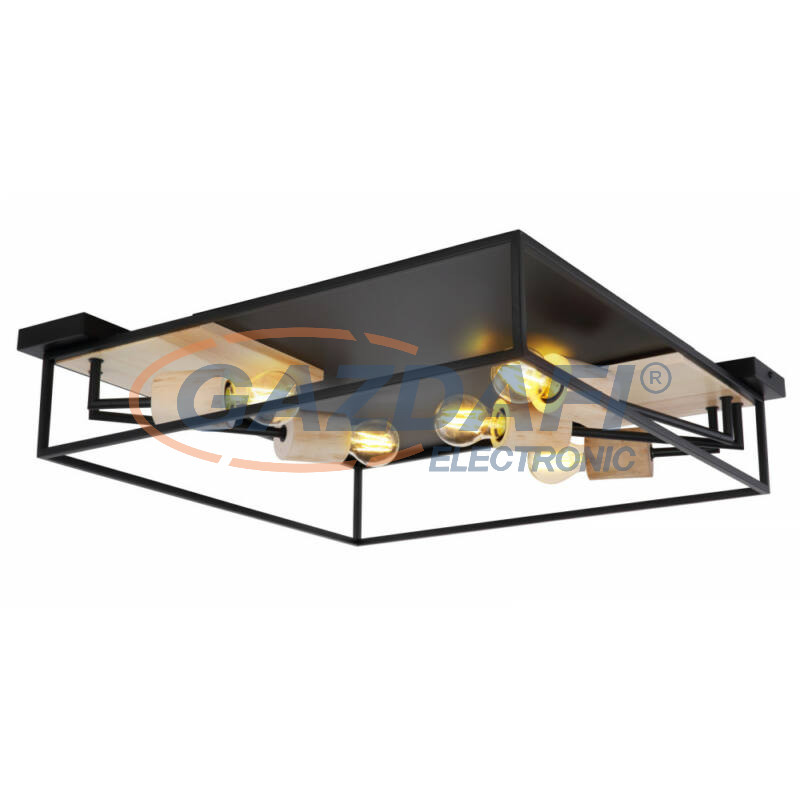 Mennyezetlámpa matt fekete váz, natúr fa foglalatok. HxSZxM:640x640x145, fényforrás nélkül 5xE27 60W 230V
