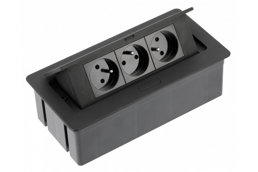GTV AE-PBSUC2GU-20N Négyszögletű felugró táp- és csatlakozóaljzat SOFT, 3xFRANCIA+2xUSB 2,1A, AC220-240V, 50/60Hz,IP20,1,5 m kábel, fekete