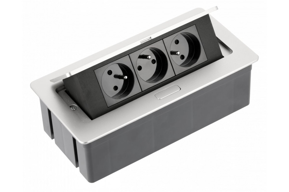 A SOFT asztalon keresztüli elosztó a legnépszerűbb süllyesztett aljzatmodell a GTV kínálatában. Sokoldalúságának köszönhetően minden típusú munkalapra alkalmas: konyhában, irodában és nappaliban. Három színben kapható: fehér, fekete és ezüst. A kellemes tapintású szatén bevonat a SOFT elosztót még stílusosabbá teszi, és javítja a munkavégzés kényelmét. Nagy előnye az aljzatok aszimmetrikus elrendezése, így nem okoz gondot három ferde dugó egyidejű csatlakoztatása.