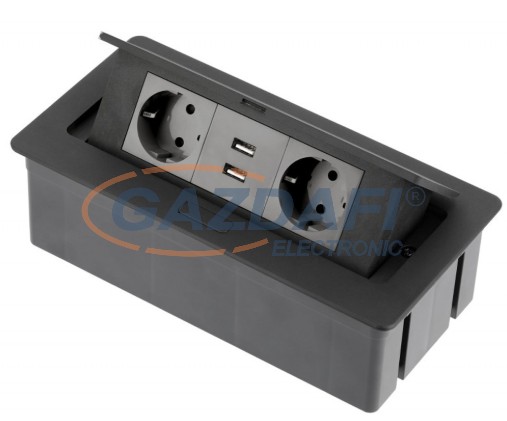 GTV AE-PBSUC2GS-20N Süllyeszthető elosztó 2x SCHUKO aljzat, 2xUSB, 2,1A, AC220-240V, max 3600W, IP20, 1,5m, fekete