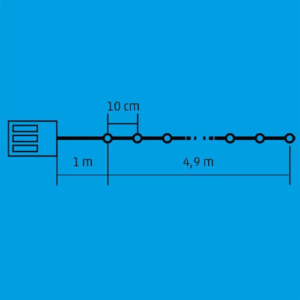 Ez a 4,9 méter hosszú fényfüzér 50 darab színes LED-del van felszerelve, amelyek ragyogó és élénk fényt biztosítanak, bármely helyszínen használva. A zöld vezeték diszkréten illeszkedik a környezetbe, különösen jól mutat a karácsonyfán, de bármely növény vagy beltéri díszítés kiváló kiegészítője lehet. A fényfüzér különlegessége, hogy 8 különböző fényprogramot kínál, így változatos fényhatásokkal alakíthatja ki az ideális hangulatot. Emellett a beépített időzítő funkció biztosítja, hogy a fényfüzér automatikusan működjön: 6 órán keresztül világít, majd 18 órán át kikapcsolva marad, hogy energiatakarékos legyen és kényelmes használatot biztosítson.