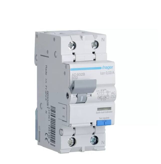 HAGER AD932B Áramvédős kismegszakító 1P+N, B-32A, 30mA, 6kA, AC